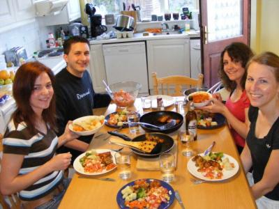 Abends ist Nicoles Freund Markus noch zu Besuche gekommen und wir haben alle zusammen zu Abend gegessen. Endlich hat der arme Steffen mal was Richtiges zu essen bekommen...er isst seit 3 Monaten jeden Tag Cup Nudeln, Pommes oder Nudeln mit Tomatensoße. Langsam haben wir uns Sorgen gemacht, dass er irgendwann wegen einer Mononatriumglutamatvergiftung einfach umfällt.
